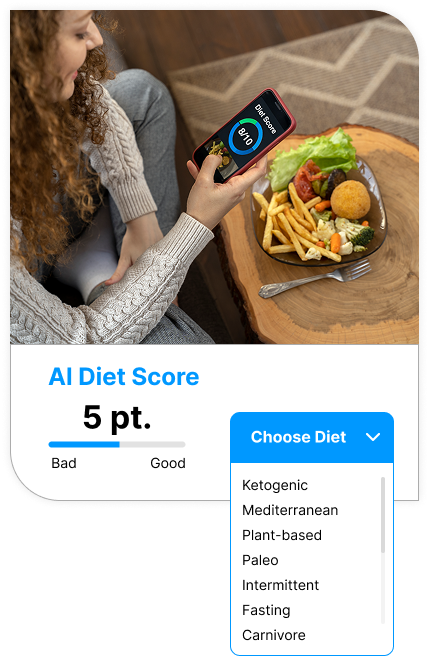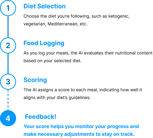The Diet Score feature in MacroAI is a groundbreaking tool designed to help you stay aligned with your dietary goals - something you won’t find in any other macro tracking app