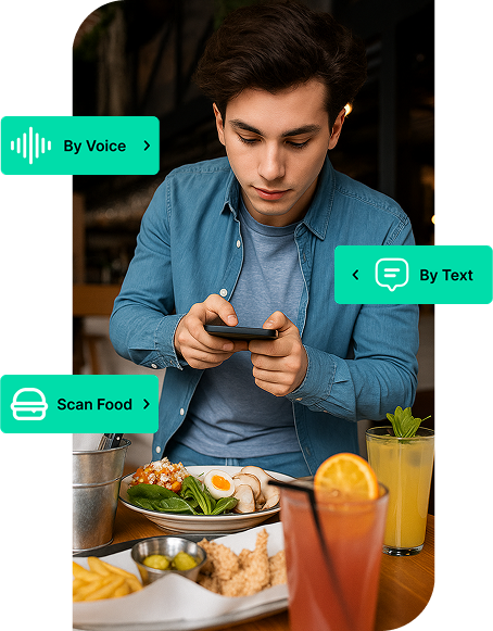 Describe your meal by voice, including type of food and portion size, and the AI will do the rest